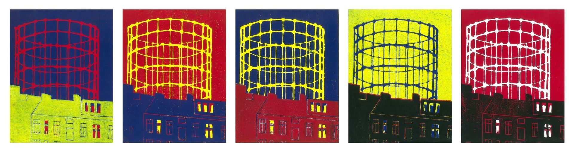 GASOMETER Linolschnitt auf Papier linocut on paper je 24 x 18 cm 2012