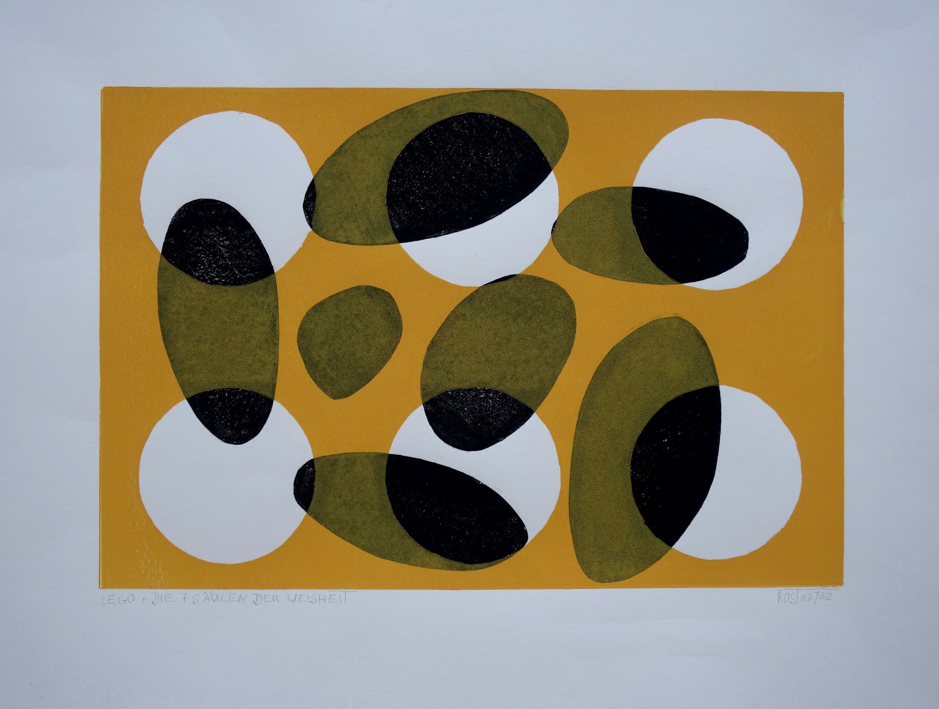 LEGO UND DIE 7 SÄULEN Linolschnitt auf Papier 40 x 50 cm U 2022